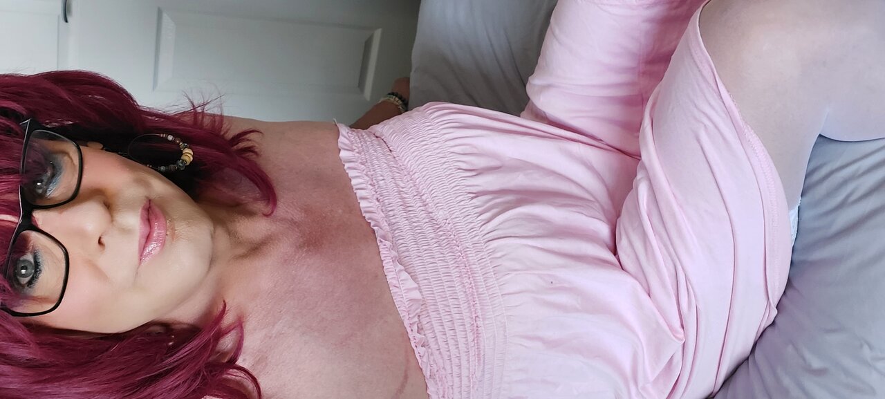 Crossing dressing Juniper from Yorkshire dressed in a pink off shoulder dress and high heels showing off her mature but sexy legs and playing with her hard dick for your masturbation enjoyment