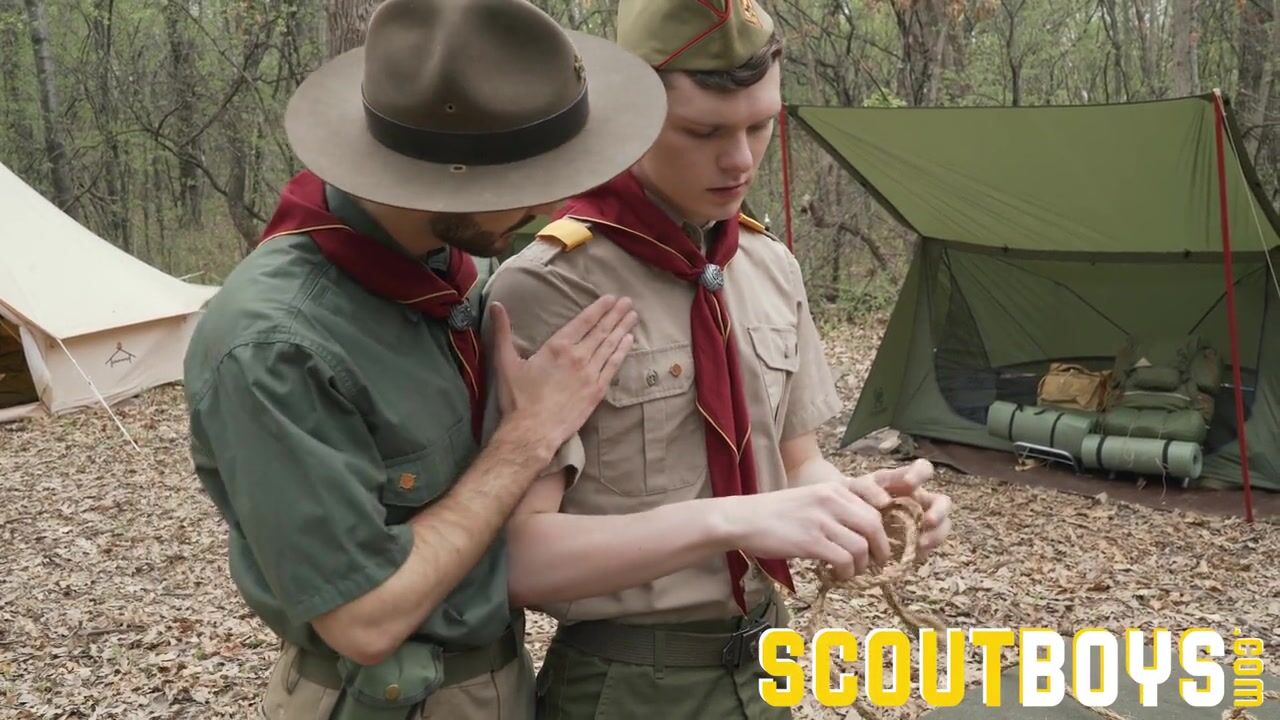 Hairy scoutmaster seduces and breeds horny twink