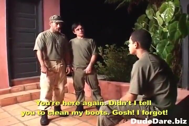 This military trainee was given some workouts to undertake but he decided to be clever about it. He was caught chilling and smoking cigarettes. His punishment was to suck his trainers's dicks and endure a rough anal boinking and deepthroat.