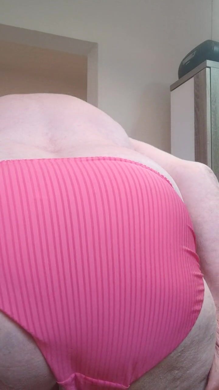 I found used panties of my wife in the laundry basket and decided to put them on. Stretched them so that my cock and balls were tightened and began to hurt. Made me horny as hell and i had to fuck and vibrate my assholr!