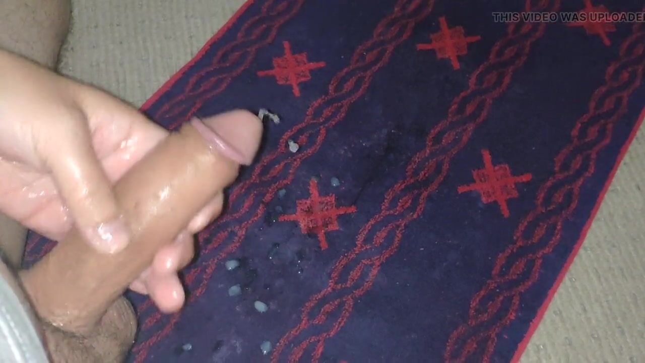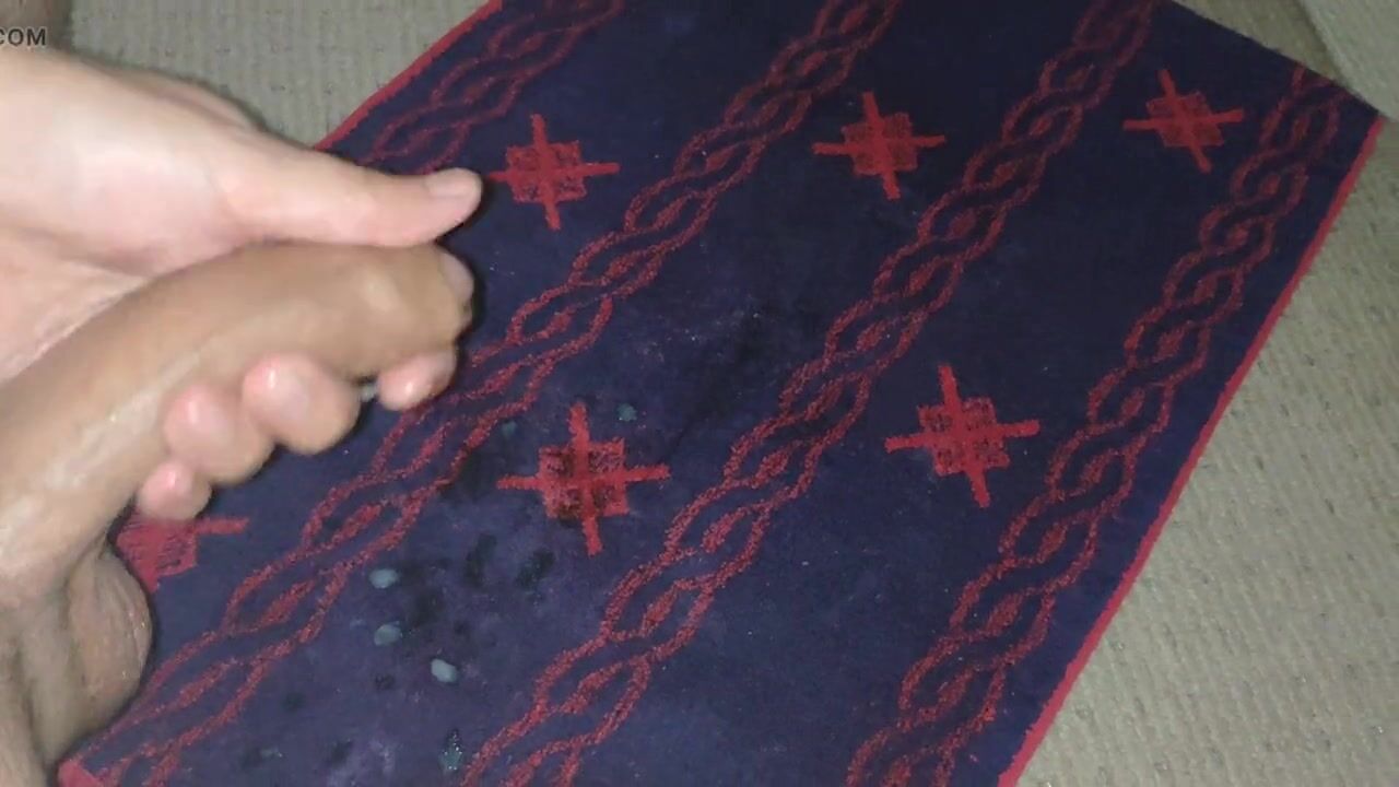 Late evening masturbation session ends with my curved cock being covered in precum and spit. Playing with my balls and my dick finally makes me shiver in orgasm and my hard cock exploding with hot sticky cum all over my already wet towel.