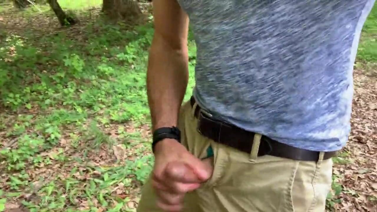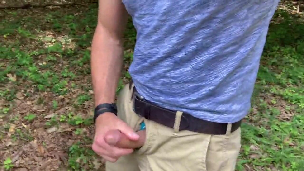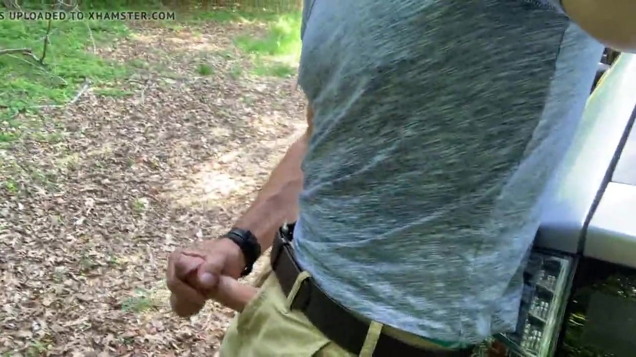 Jerking off and cumming in the parking lot at the woods