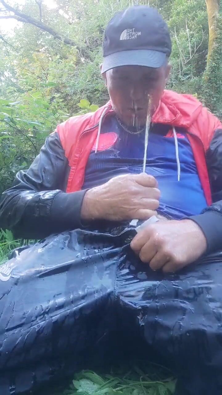 Pissing all over me shiny Nike gear and then I cum on my piss wet trackies