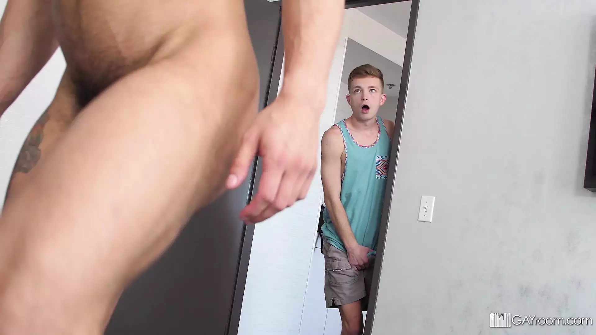 Twink Gets Caught Jerking Off To Roommates Hard Cock