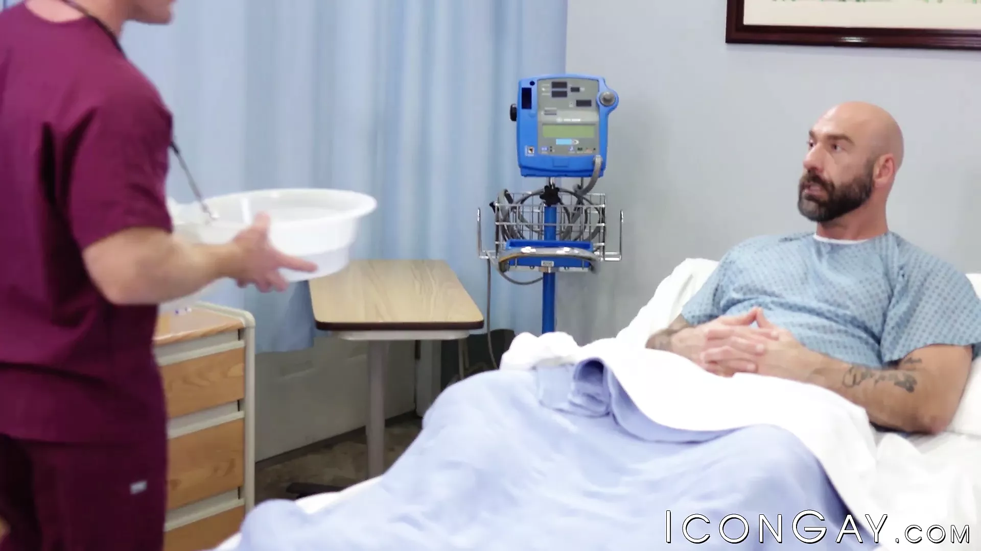 Doctor Jack Vidra came to see his big stud tattooed patient Drew Sebastian ends up riding his big pierced cock before getting cum on his ass!
