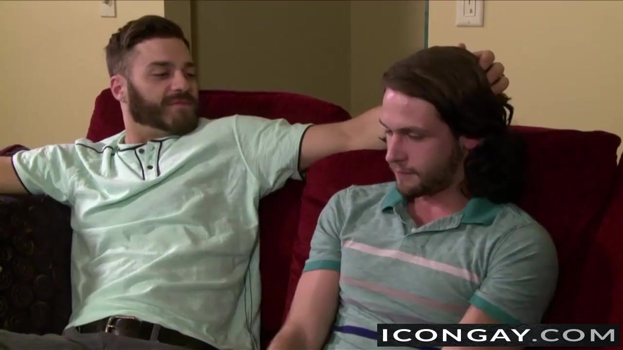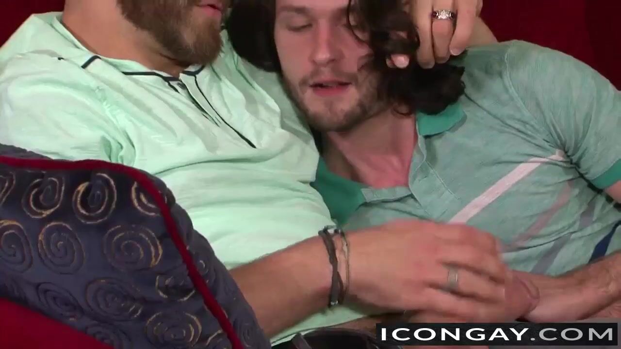 Tommy reaches over and plays with Duncan's hair, rubbing his chest. Duncan looks over at him, and puts his hand on his belly. Tommy unzips his pants, and pulls out his dick, which he starts stroking.